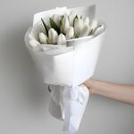 Потрясающий букет из 21 чисто-белого тюльпана, воплощающий изящество, спокойствие и вневременную красоту. Элегантно упакован и идеально подходит для выражения искренних чувств, сочувствия или просто для празднования сдержанной элегантности.