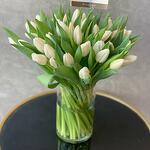white tulips - 50 шт. стеклянная ваза (высота 30 см) - 1 шт.
