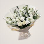 Eucalyptus - 8 шт. White rose - 5 шт. white lisianthus - 6 шт. white mathiola - 1 шт.