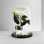 короткий стабилизированный стебель - 1 шт. xxl белая стабилизированная роза в стеклянном куполе 26 см, упакованная в милую коробку для роз - 1 шт.