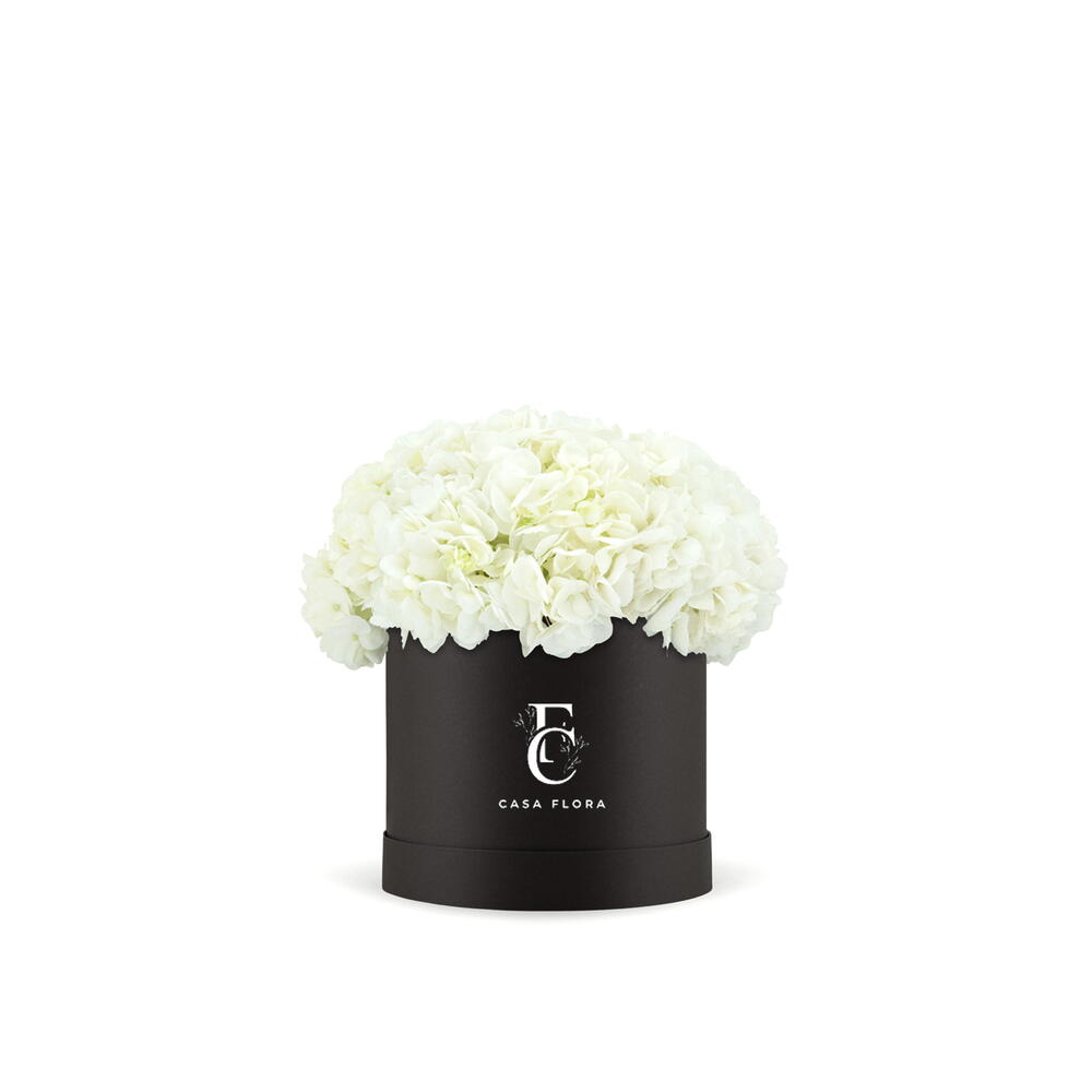 hydrangea white - 3 шт. круглая чёрная коробка - 1 шт.