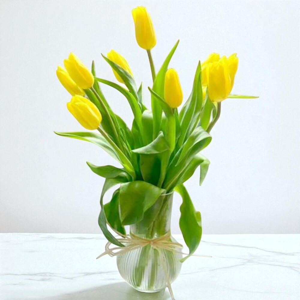glass vase - 1 шт. yellow tulips - 10 шт.