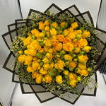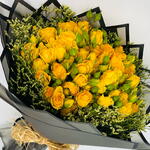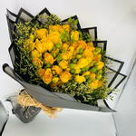 Ribbon - 2 шт. Limonium - 6 шт. yellow spray rose - 30 шт. wrapping paper - 5 шт.