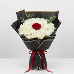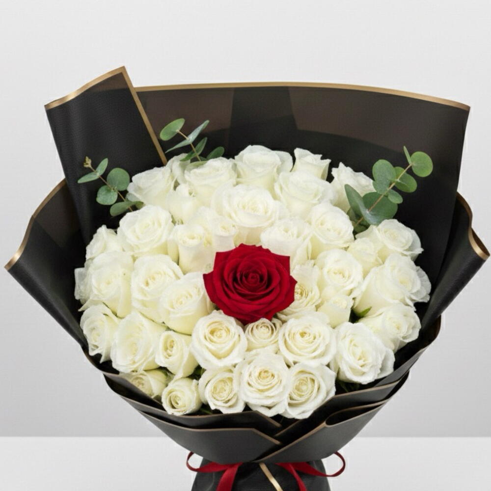 Red rose - 1 шт. Eucalyptus - 3 шт. White rose - 50 шт.