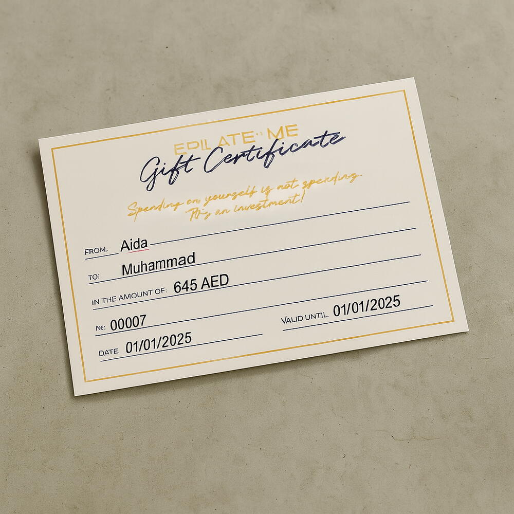 Отличная возможность подарить себе или другу время, проведённое на безболезненной лазерной эпиляции в Epilate Me. Предложение действует для женщин: голени, подмышки и глубокое бикини. Акция ограничена. Подарочная карта будет отправлена вам в электронном виде. Пожалуйста, укажите ваш email в заказе, чтобы мы могли отправить вам подарочную карту.