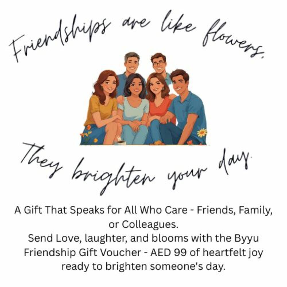 🎁 Подарочный сертификат на 99 дирхамов ОАЭ для дружбы 🎁 Отпразднуйте важные узы — будь то друг, член семьи, двоюродный брат или коллега — с нашим цифровым подарочным сертификатом на 99 дирхамов ОАЭ от Byyu Flowers. Этот продуманный подарок позволит вашему близкому человеку выбрать любимые цветы, каждый лепесток которого будет дарить радость и тепло. 💡 Как это работает: Это цифровой сертификат, который доставляется мгновенно. Получатель может обменять его на любой товар стоимостью 99 дирхамов ОАЭ из нашего магазина. Может взиматься плата за доставку, но не волнуйтесь — мы вернем ее после оформления заказа!