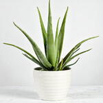 Алоэ вера — суккулентное растение рода Алоэ. Стебель растения бесстебельный или очень короткий, с толстыми, зеленоватыми, мясистыми листьями, отходящими веером от центрального стебля. Край листа зазубрен мелкими зубчиками.