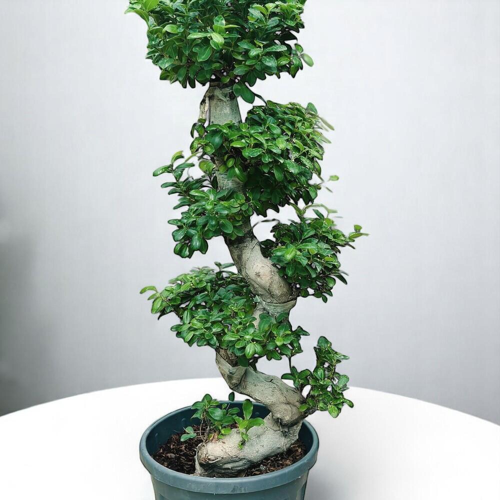 Преобразите свое пространство с помощью элегантного шарма бонсай из фикуса S-образной формы. Этот эффектный бонсай отличается изящным S-образным стволом, символизирующим равновесие и гармонию. Его пышные, блестящие листья привнесут нотку природного спокойствия в любой интерьер, делая его идеальным украшением дома или офиса. Этот бонсай из фикуса, простой в уходе и обладающий уникальным стилем, предлагает изысканный способ насладиться красотой сада бонсай.