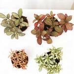 Преобразите ваше жилое пространство с яркими оттенками и пышной листвой нашего микса фиттоний. Этот прекрасный набор растений фиттонии, также известных как нервные растения, демонстрирует разнообразие выразительных окрасок и узоров, которые придают нотку элегантности любой комнате. Идеально подходит для условий с низкой освещённостью, микс фиттоний одинаково хорош как для новичков, так и для опытных любителей растений. Каждое растение в этом миксе обладает уникальным рисунком листьев — от насыщенных зелёных и глубоких красных до ярких розовых оттенков, что делает его великолепным дополнением к вашему дому или офису. Обновите интерьер этим неприхотливым миксом, который процветает во влажной среде.