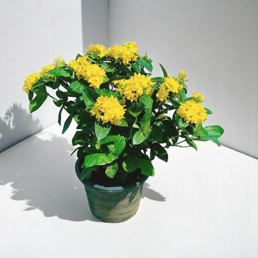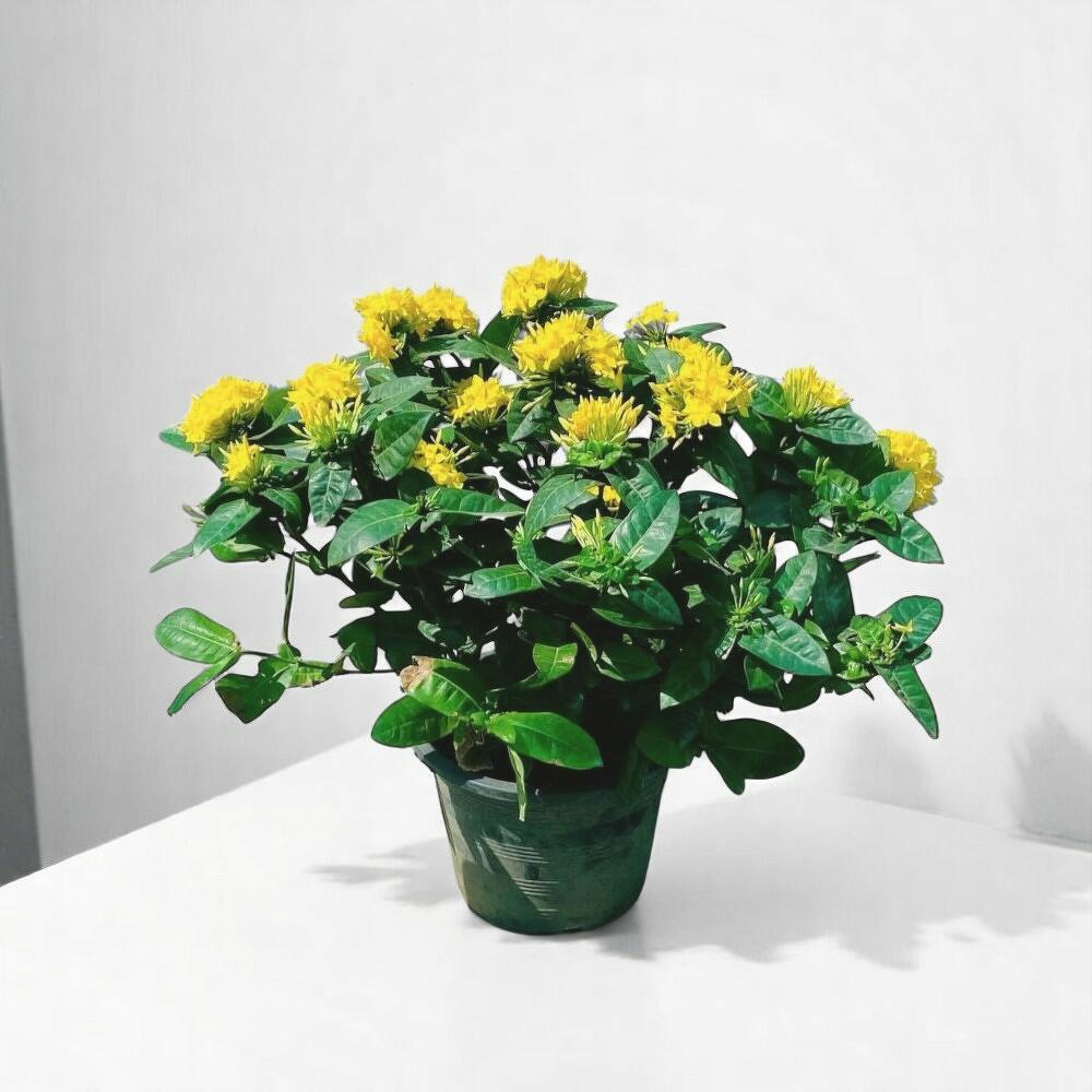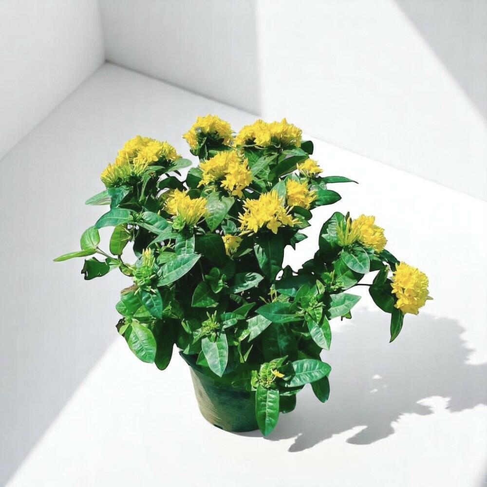 Добавьте луч солнца в дом или сад с помощью яркой жёлтой иксоры! Эта тропическая красавица украшена соцветиями из ярких золотисто-жёлтых цветов, которые обильно распускаются на фоне пышной глянцевой зелёной листвы. Иксора, известная длительным периодом цветения и жизнерадостным видом, великолепно смотрится в качестве декоративного центрального элемента в горшках или на клумбах. Она привлекает бабочек и других опылителей, привнося жизнь и цвет туда, куда вы её поместите. Будь то солнечная терраса или светлый уголок в помещении, это растение дарит тропическое очарование круглый год. Неприхотлива в уходе и невероятно декоративна — отличный выбор для любителей цветов.