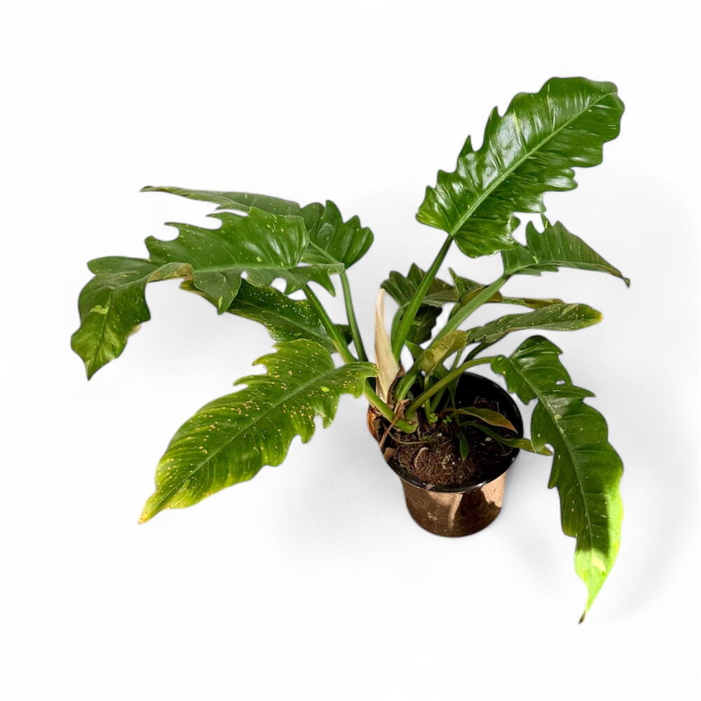 Филодендрон «Огненное кольцо» — редкий, медленнорастущий гибрид филодендрона, известный своими зубчатыми листьями с яркими зелеными, желтыми, кремовыми и оранжевыми пятнами.