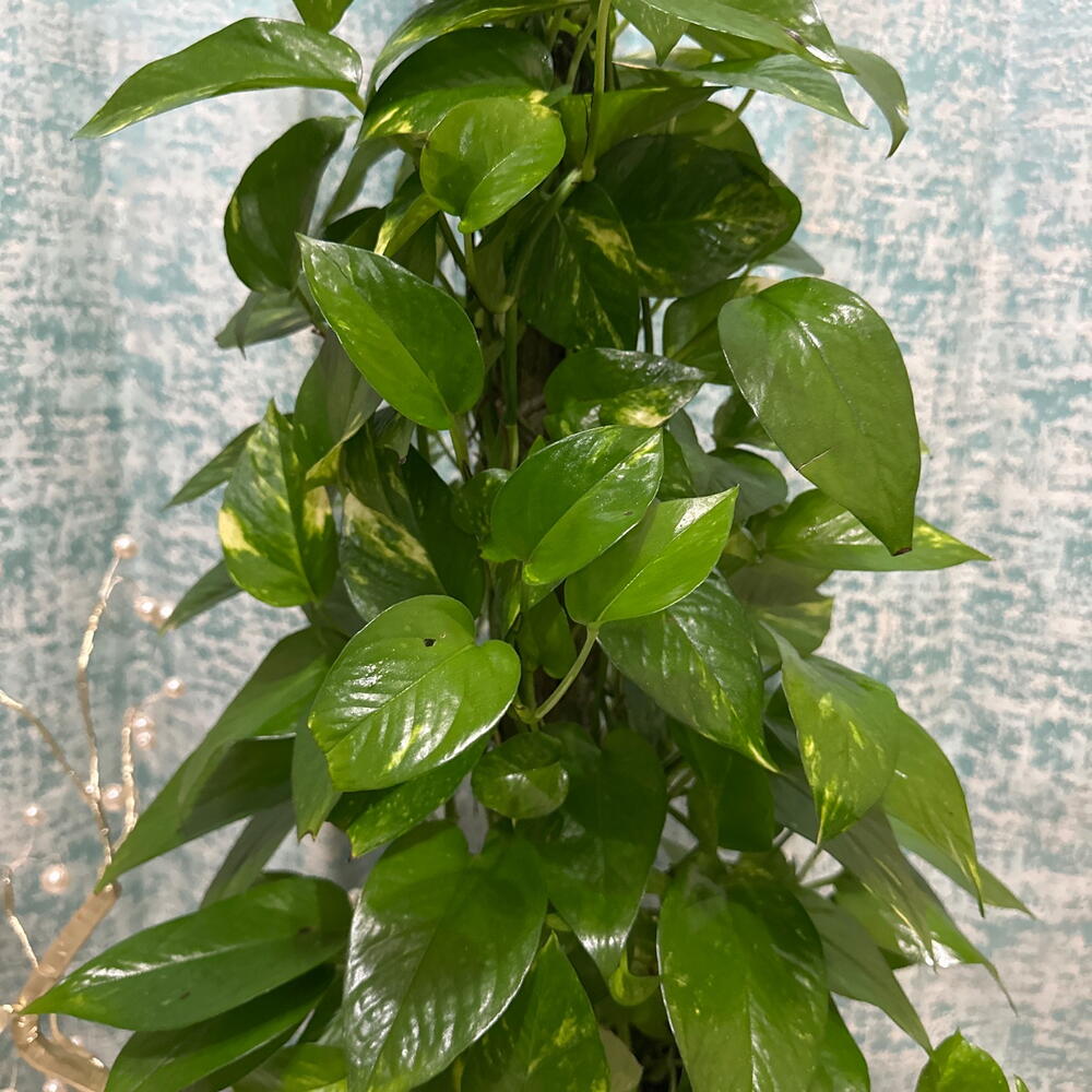 Потос, также известный как «счастливое денежное растение», — это неприхотливое комнатное растение, которое хорошо растет при ярком рассеянном солнечном свете и может переносить также условия низкой освещенности. Поливайте растение только тогда, когда верхний слой почвы станет сухим, так как чрезмерный полив может привести к гниению корней. Вертикальные опоры из мха следует слегка увлажнять легким опрыскиванием несколько раз в неделю, что способствует прикреплению воздушных корней и поддерживает здоровый рост вверх с обилием новых побегов. Это растение хорошо себя чувствует при обычной комнатной температуре от 18°C до 30°C и умеренной влажности; периодическое опрыскивание сохранит листья свежими и яркими. Для лучшего роста подкармливайте растение сбалансированным жидким удобрением каждые две-четыре недели. Регулярная обрезка длинных побегов способствует более пышному и густому виду, а протирание листьев влажной тканью помогает поддерживать чистоту растения и защищать его от вредителей. Считается, что это счастливое растение, размещенное дома или в офисе, приносит позитивную энергию и процветание.
