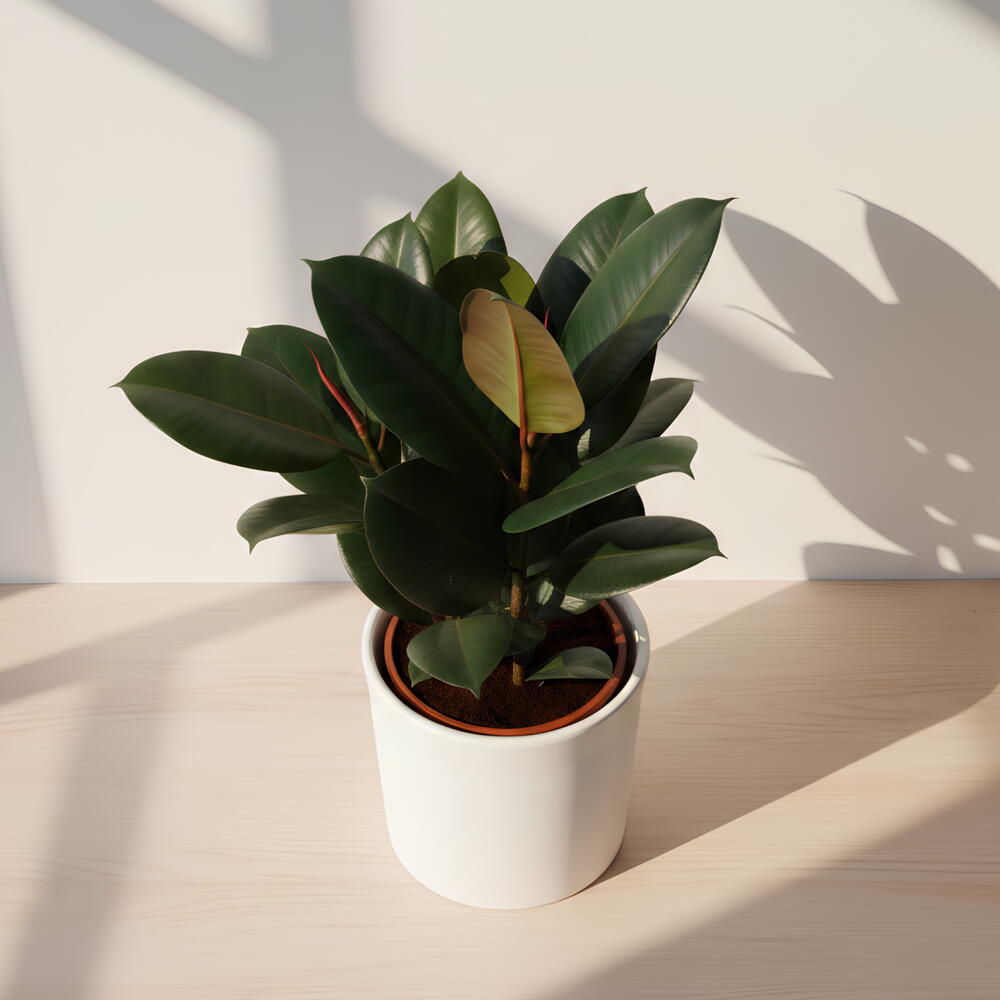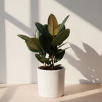 Одно из самых популярных комнатных растений, Ficus Elastica, более известный как резиновое дерево, имеет очень привлекательные, блестящие, почти чёрные листья с оттенком бордового на нижней стороне листьев. Оно прекрасно сочетается с любым интерьером и помогает очищать воздух.