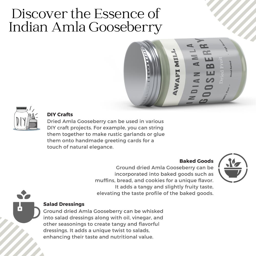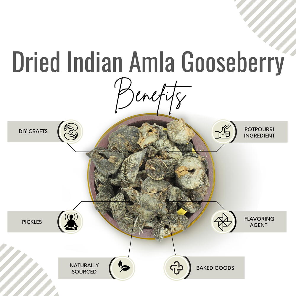 Откройте для себя природную пользу сушеной амлы — простого, но универсального дополнения к вашему кулинарному репертуару. Изготовленные путем бережной дегидрации, эти сушеные ягоды индийского крыжовника сохраняют всю суть амлы без каких-либо добавок. Обладая слегка сладким и пикантным вкусом, сушеная амла идеально подходит для перекуса или добавления в различные блюда. Эти сухофрукты дарят заряд природной пользы — от добавления уникальной нотки в салаты до придания вашим рецептам лёгкой кислинки. Компактная и удобная, сушеная амла служит полезным перекусом или ароматным ингредиентом для творческих кулинарных экспериментов. Наслаждайтесь простотой и универсальностью сушеной амлы, открывая новые способы улучшить свои закуски, блюда и десерты с помощью неповторимого вкуса этого сухофрукта.