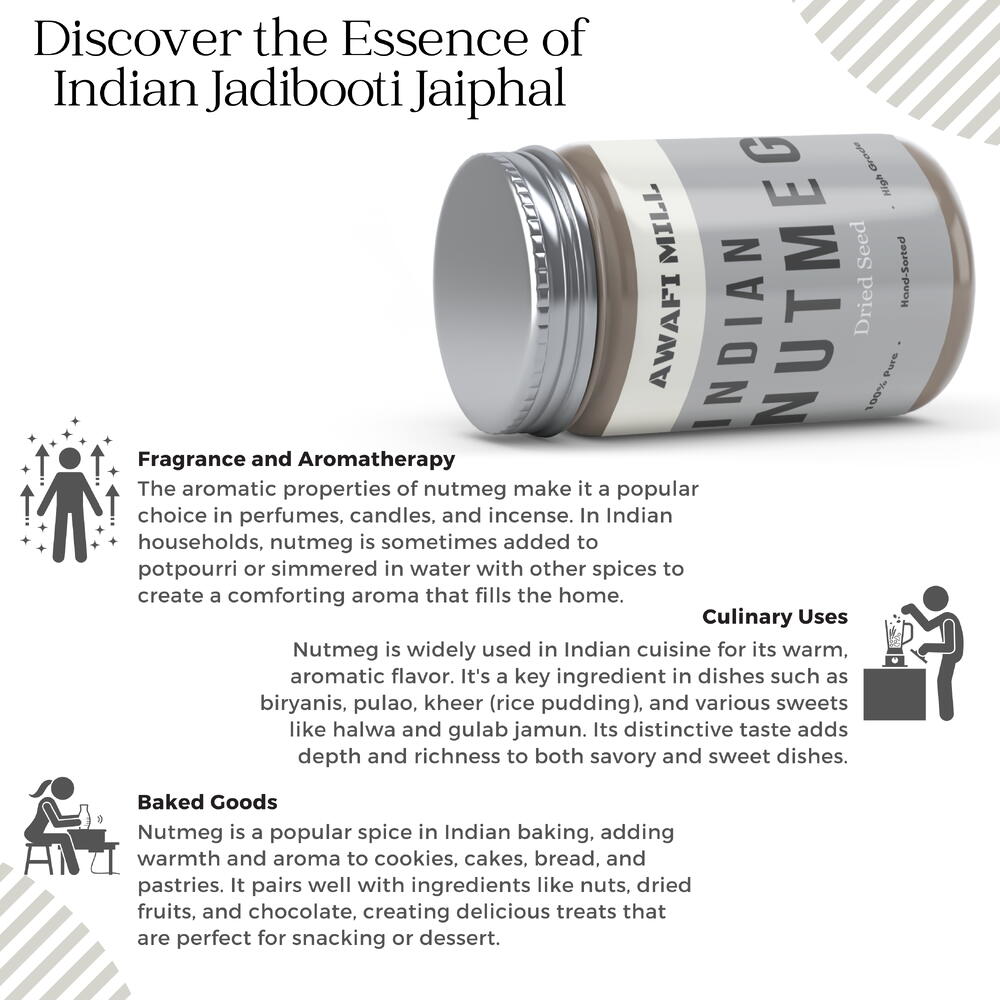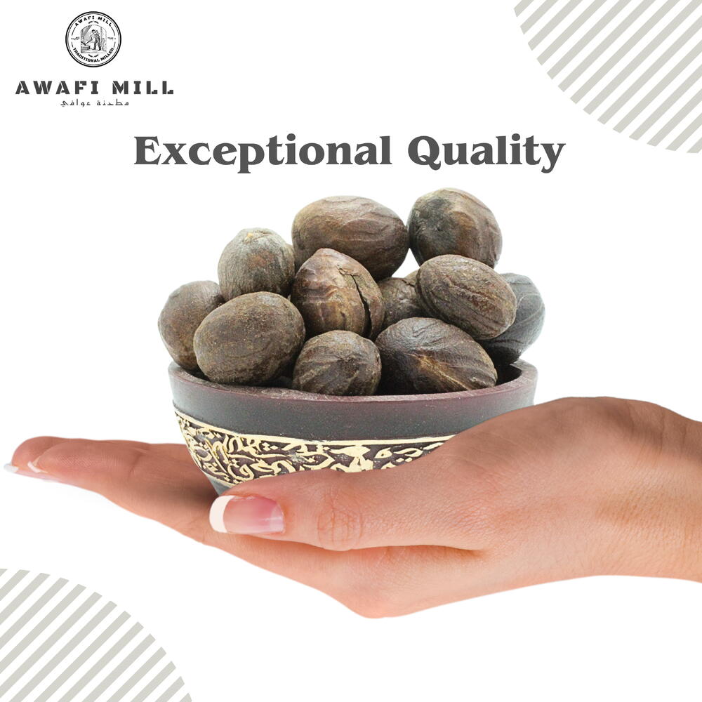 Компания Awafi Mill с гордостью представляет цельный мускатный орех – кулинарное сокровище, произрастающее в самом сердце индийского региона Джадибути, а именно специю Джайфал. Известный своим превосходным качеством и аутентичным вкусом, наш цельный мускатный орех – универсальная специя, которая обещает вывести ваши кулинарные впечатления на новый уровень. Переходя в увлекательное кулинарное путешествие, мускатный орех придаёт насыщенный и ароматный вкус, улучшая вкус как сладких, так и соленых блюд. Целый мускатный орех позволяет насладиться всей его глубиной, измельчив или добавив его в свежем виде в ваши рецепты, что гарантирует взрыв свежести в каждом блюде. Раскрывая всю многогранность мускатного ореха, эта специя одинаково улучшает вкус выпечки, десертов, напитков и закусок. Насладитесь тёплыми, ореховыми и слегка сладковатыми нотками, которые мускатный орех привносит в ваши творения, придавая им неповторимый характер. Мускатный орех — это ваш пропуск к кулинарному творчеству, независимо от того, готовите ли вы пироги, взбиваете заварной крем, томите рагу, готовите супы или экспериментируете с напитками. Тщательно отобранные ингредиенты Awafi Mill гарантируют, что вы получите самый свежий и ароматный мускатный орех для ваших кулинарных экспериментов. Продуманно упакованный для сохранения оптимальной свежести, цельный мускатный орех Awafi Mill — свидетельство нашей неизменной приверженности доставке высококачественного продукта прямо к вашему порогу. Окунитесь в подлинный индийский вкус джадибути с нашим мускатным орехом, превратив его в свою кулинарную музу и превратив ваши блюда в изысканные шедевры, пленяющие чувства. Поднимите кулинарное мастерство на новый уровень с помощью превосходного качества и аутентичного вкуса цельного мускатного ореха от Awafi Mill.