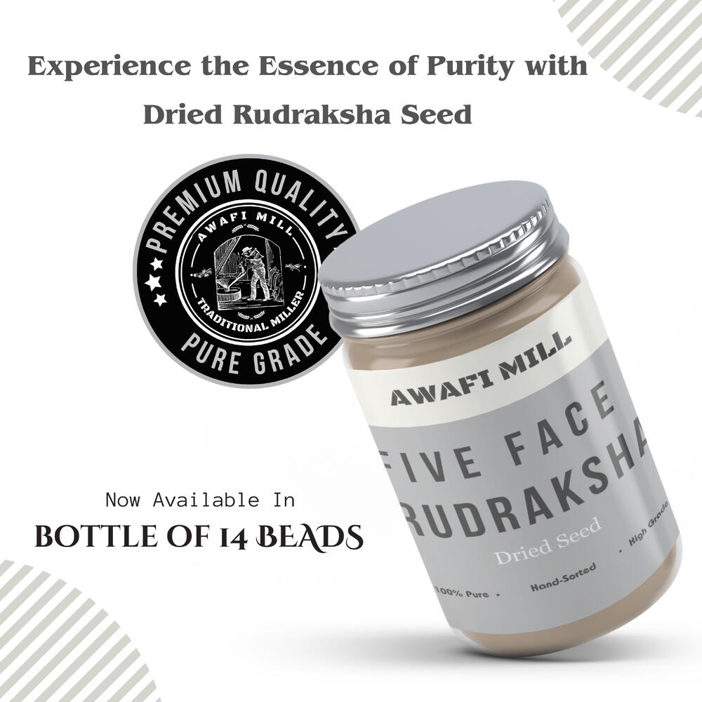 AWAFI MILL Бусины Рудракша | 5-лицевые Мукхи - бутылка из 14 бусин