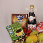 Верните себе приятные воспоминания с корзиной «Только для мамы – ностальгические вкусности» – трогательной коллекцией классических лакомств и свежих фруктов. Эта очаровательная корзина размером 28 см x 35 см идеально подходит для Дня матери. В ней собраны любимые с детства сладости, такие как Vimto, смесь для десерта Carmelle и клубничное желе, в сочетании с сочными манго и свежей клубникой. Идеальный подарок для мам, которые ценят вкус традиций с фруктовой ноткой. Инструкция по уходу: Храните сухие продукты, такие как смесь для желе, смесь для десерта и смесь для пельменей, в прохладной, сухой кладовой. После вскрытия держите бутылку Vimto закрытой и в холодильнике. Свежие фрукты, такие как манго и клубника, следует употребить в течение нескольких дней и хранить в холодильнике для сохранения свежести. Эта подарочная корзина сочетает в себе ностальгию и питательные вещества – утешительный и продуманный подарок для мам, которые заслуживают вкуса любви.