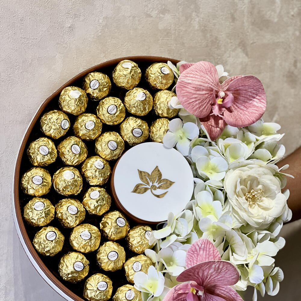 ferrero rocher chocolates - 29 шт. искусственная орхидея - 2 шт. искусственная гортензия - 3 шт.