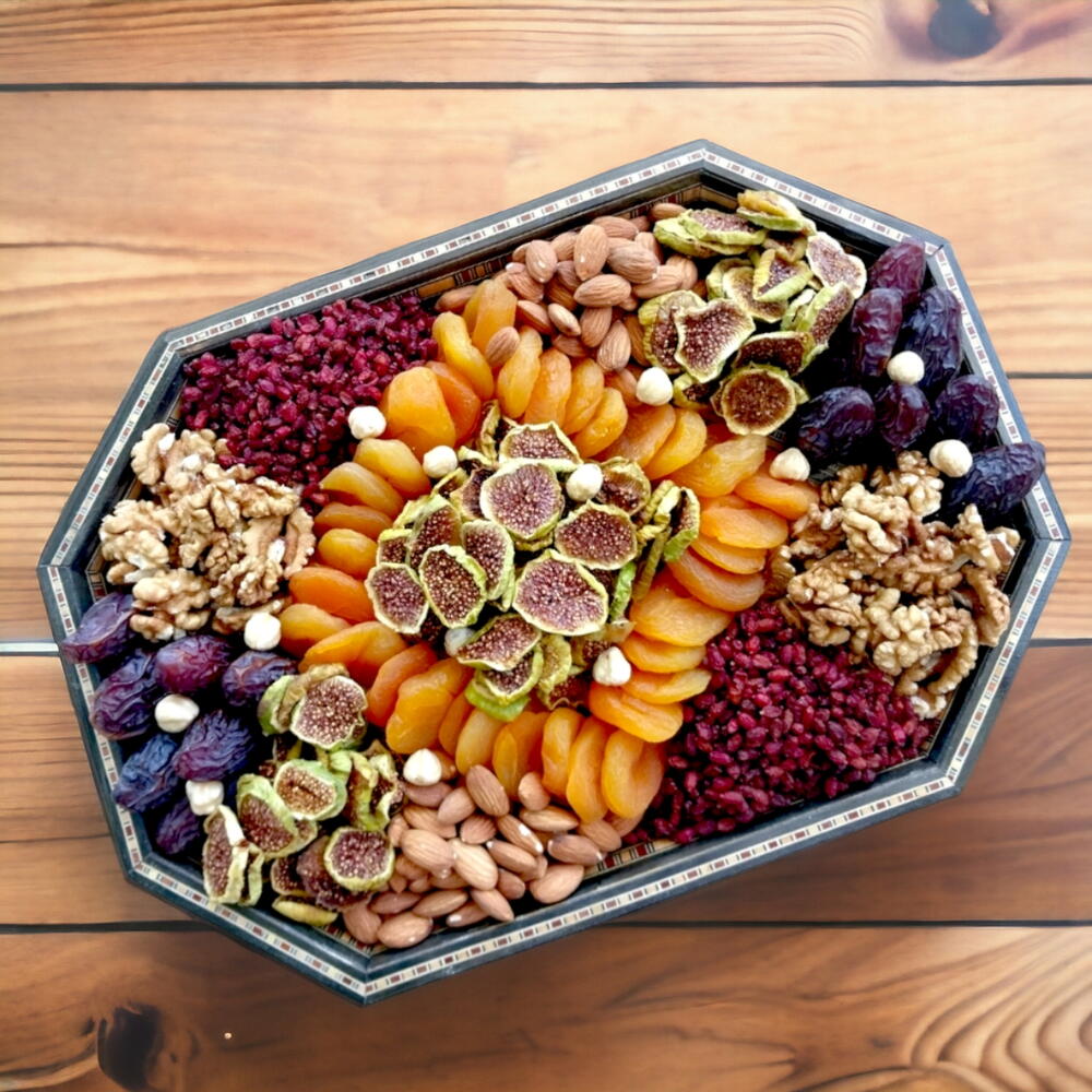 walnut - 250 гр. абрикос - 250 гр. almond - 250 гр. фундук - 250 гр. финики меджул - 250 гр. барбарис - 250 гр. сушёный нарезанный инжир - 250 гр.