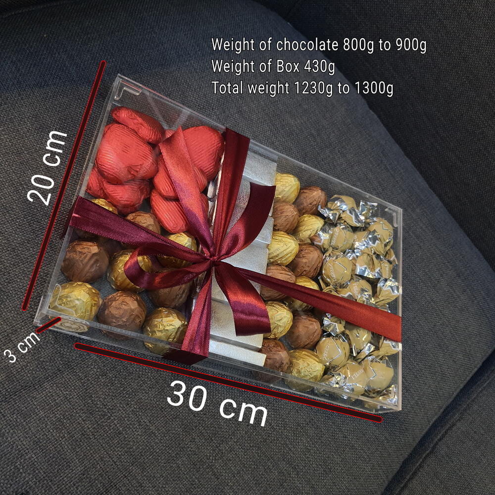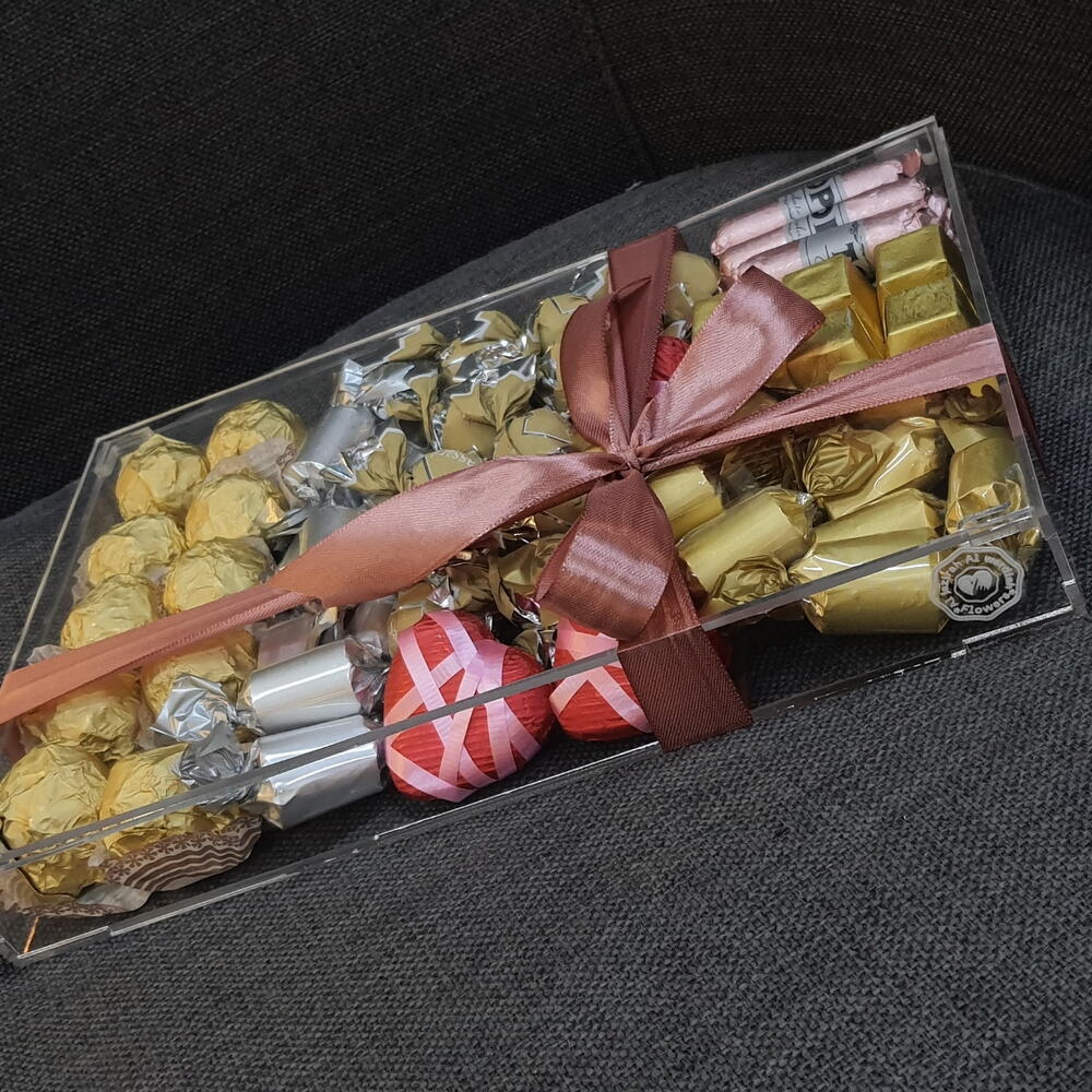 акриловая коробка - 1 шт. шоколад разных вкусов - 45 шт.