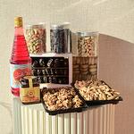 Ribbon - 1 шт. honey - 250 гр. raisins - 350 гр. figs - 500 гр. walnuts - 275 гр. орехи кешью - 300 гр. цветочная композиция в коробке - 1 шт. финики аджва - 500 гр. жареный миндаль - 325 гр. микс фисташек - 250 гр. Рух Афза - 800 мл
