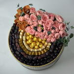 Eucalyptus - 5 шт. cymbidium - 1 шт. chocolates - 600 гр. dates - 500 гр. розы джульеты - 10 шт.
