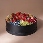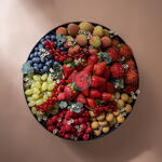 Роскошная праздничная фруктовая подарочная коробка Побалуйте себя самым элегантным лакомством сезона — нашей роскошной праздничной фруктовой подарочной коробкой, художественно оформленной коллекцией лучших даров природы. Свежая, сочная клубника, крупная голубика, пышный виноград и экзотические фрукты соседствуют с нежными белыми цветами внутри элегантного матово-черного круглого контейнера, создавая утонченную и праздничную презентацию. Каждый фрукт тщательно отбирается вручную на пике спелости и с ярким вкусом, чтобы каждый укус ощущался как праздник. Контраст глубоких красных и зелёных оттенков и бледных цветков создаёт визуальную гармонию и премиальную эстетику — идеально подходит для корпоративных подарков, особых случаев или чтобы показать кому-то, как сильно вы о нём заботитесь. Это не просто подарок — эта коробка представляет собой сенсорный опыт: сладкий аромат ягод, свежий хруст винограда и мягкие цветочные нотки сливаются, чтобы порадовать все чувства. Это выражение элегантности, благополучия и внимательности — идеально для запоминающихся моментов в этот праздничный сезон.