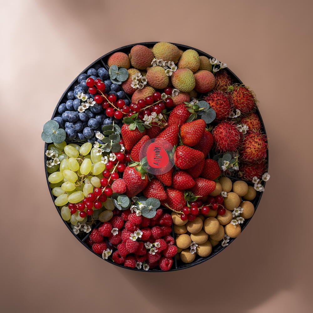 strawberry - 500 гр. raspberry - 250 гр. longan - 500 гр. rambutan - 500 гр. blueberry - 250 гр. lichi - 500 гр. красная смородина - 250 гр. белый виноград - 1000 гр.