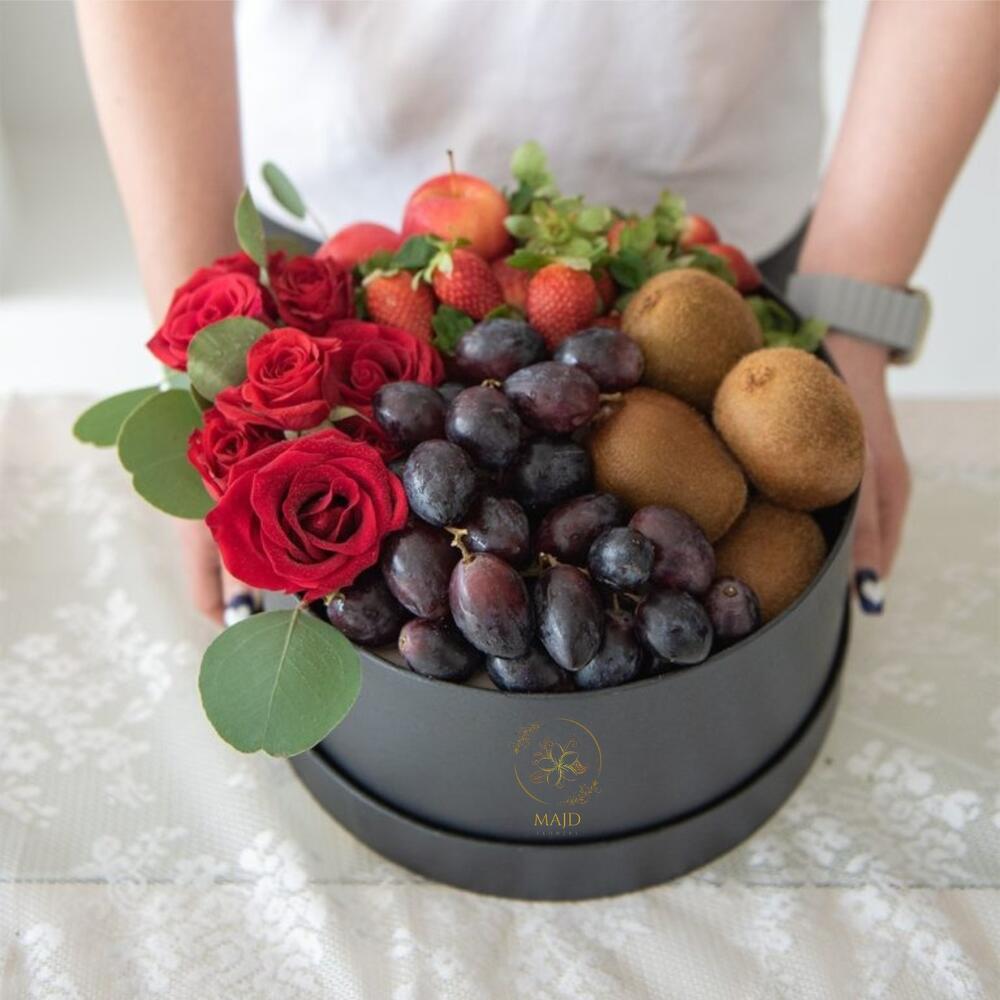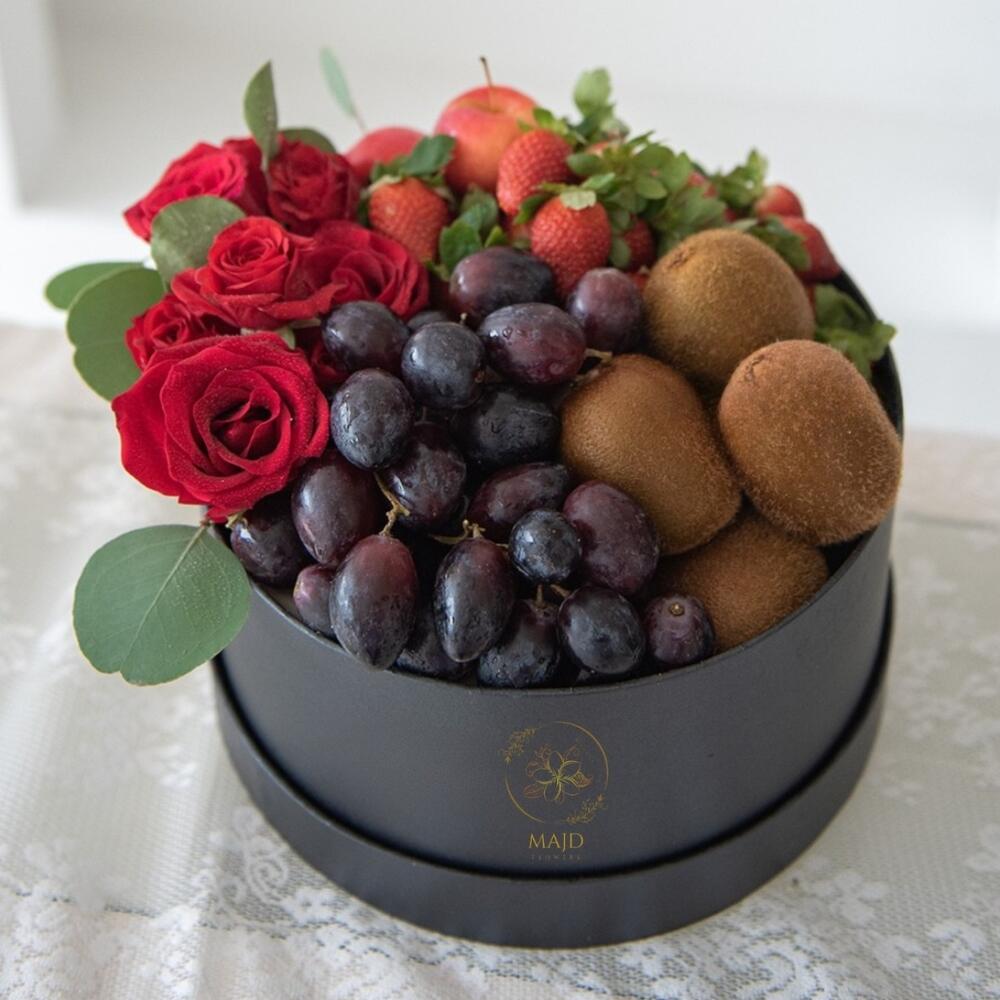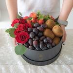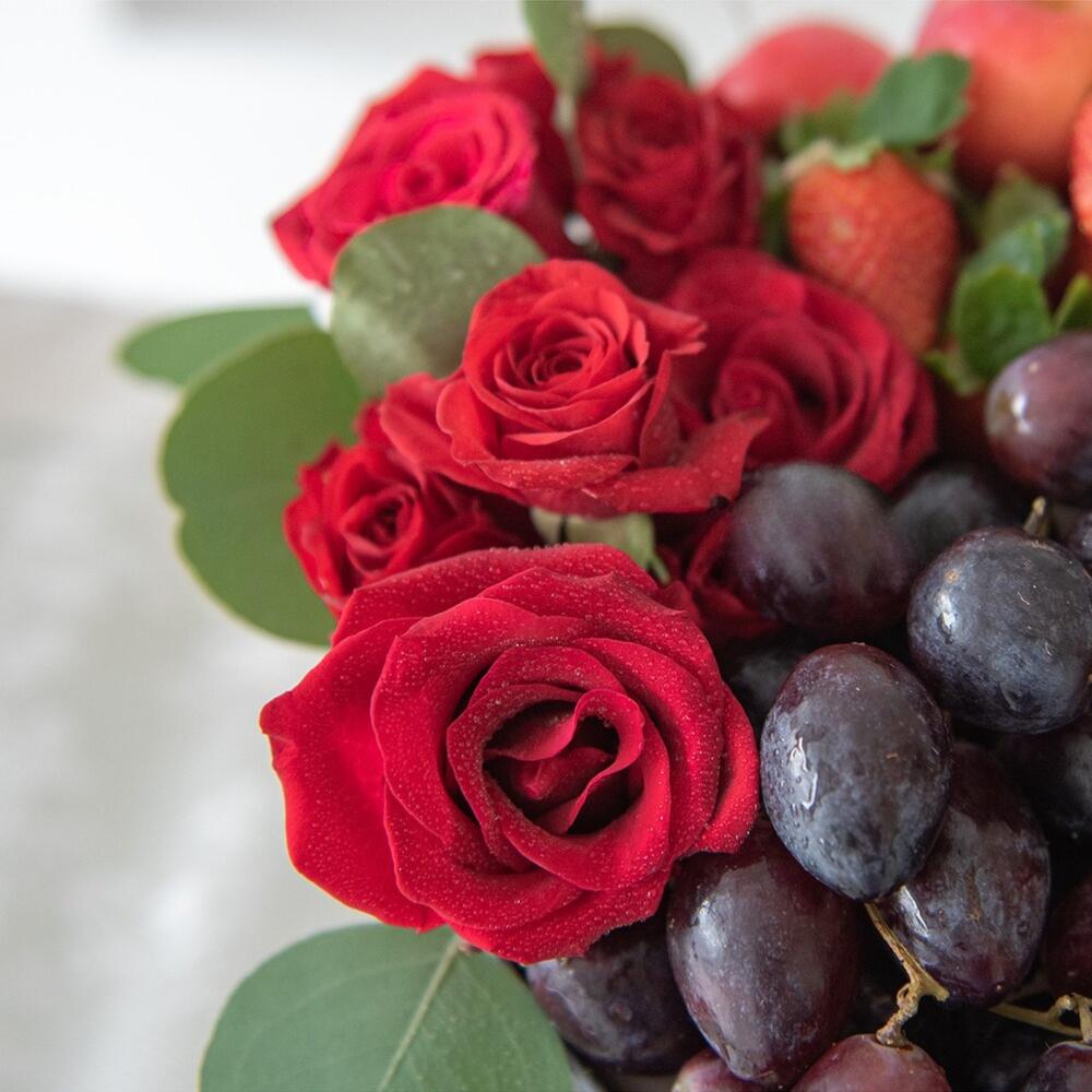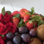 Red rose - 7 шт. kiwi - 5 шт. strawberry - 12 шт. чёрный виноград - 2 шт. слива яблоко - 2 шт.