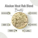 Introducing Our Gourmet Alaskan Meat Rub: Elevate Your Culinary Delight Elevate your culinary experience with our Alaskan Meat Rub, a flavorful blend meticulously crafted to redefine your gastronomic journey. This exquisite blend boasts a harmonious combination of premium Kosher salt, bold black pepper, and aromatic garlic, thoughtfully curated to accentuate the natural flavors of your preferred meats. Whether you’re grilling, roasting, or pan-searing, our Alaskan Meat Rub imparts a flawless equilibrium of savory and aromatic notes, creating a delectable seasoning that promises to captivate your taste buds with every delightful bite. Take your cooking game to new heights and indulge in the rich, authentic taste of Alaska with our expertly crafted Alaskan Meat Rub. Because every dish deserves a touch of gourmet perfection, our blend is designed to enhance the flavors of your meats, making each culinary creation an exquisite masterpiece. Savor the culinary journey as you explore the distinctive notes brought by our Alaskan Meat Rub. Elevate your dishes with this gourmet blend and let the flavors of premium Kosher salt, bold black pepper, and aromatic garlic transform your cooking into a culinary sensation. Immerse yourself in the essence of Alaska and treat your taste buds to the gourmet perfection our Alaskan Meat Rub delivers.