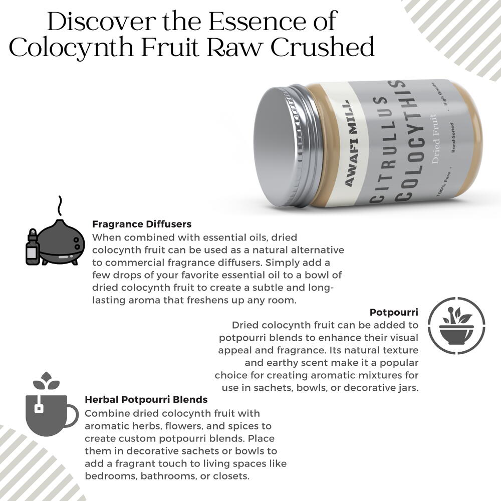 Awafi Mill proudly introduces its Colocynth Fruit Raw Crushed, a culinary delight that encapsulates the essence of Indrayan Phal, known as Kodtumbe, Kodtumba, and Tumba. Sourced with utmost care, this premium Citrullus Colocythis from Awafi Mill adds a unique touch to your UAE culinary experience. Finest Quality Crushed Colocynth: Awafi Mill ensures the highest quality of raw crushed Colocynth, delivering a product that meets the stringent standards of culinary excellence. Each particle is meticulously crushed to preserve the authentic flavors of Indrayan Phal. Versatile Culinary Marvel: Explore the versatility of Awafi Mill’s Colocynth in enhancing a myriad of dishes. From traditional Emirati recipes to modern creations, this unique blend of Kodtumbe, Kodtumba, and Tumba elevates the flavors in your kitchen. Trusted Citrullus Colocythis Source: Awafi Mill stands as your trusted source for Citrullus Colocythis, providing a reliable and authentic supply of raw crushed Colocynth. Experience the genuine essence of this culinary gem with every use.