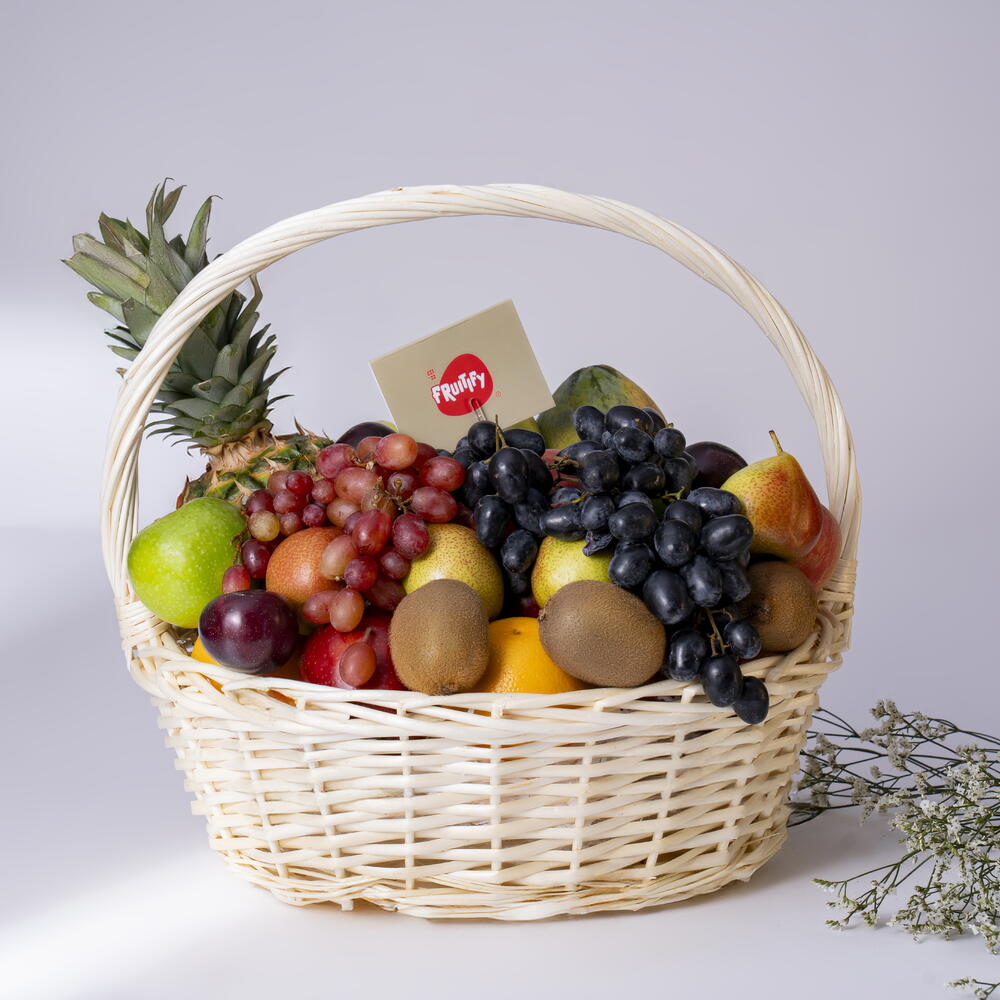 An abundant collection of handpicked, farm-fresh seasonal fruits. This classic, elegant gift, presented in a rustic wicker basket, is a perennial favorite suitable for all occasions, from corporate gifts to get well soon wishes.