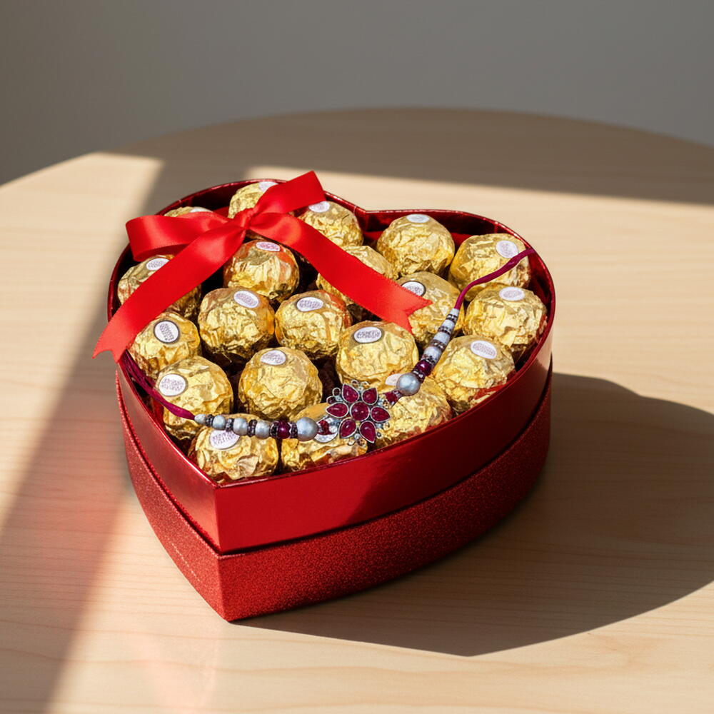 Celebrate the eternal bond of love and tradition with our Golden Delight Gift Box — a luxurious hamper designed to make any birthday truly unforgettable. Presented in a shimmering red heart-shaped box, this elegant gift features 20 Ferrero Rocher chocolates, each wrapped in golden foil for a premium taste and indulgent experience. Thoughtfully curated to blend sweet luxury with heartfelt emotion, it’s the perfect surprise for family, cousins, or loved ones. Let this birthday be a celebration of golden memories, cherished bonds, and timeless sweetness.