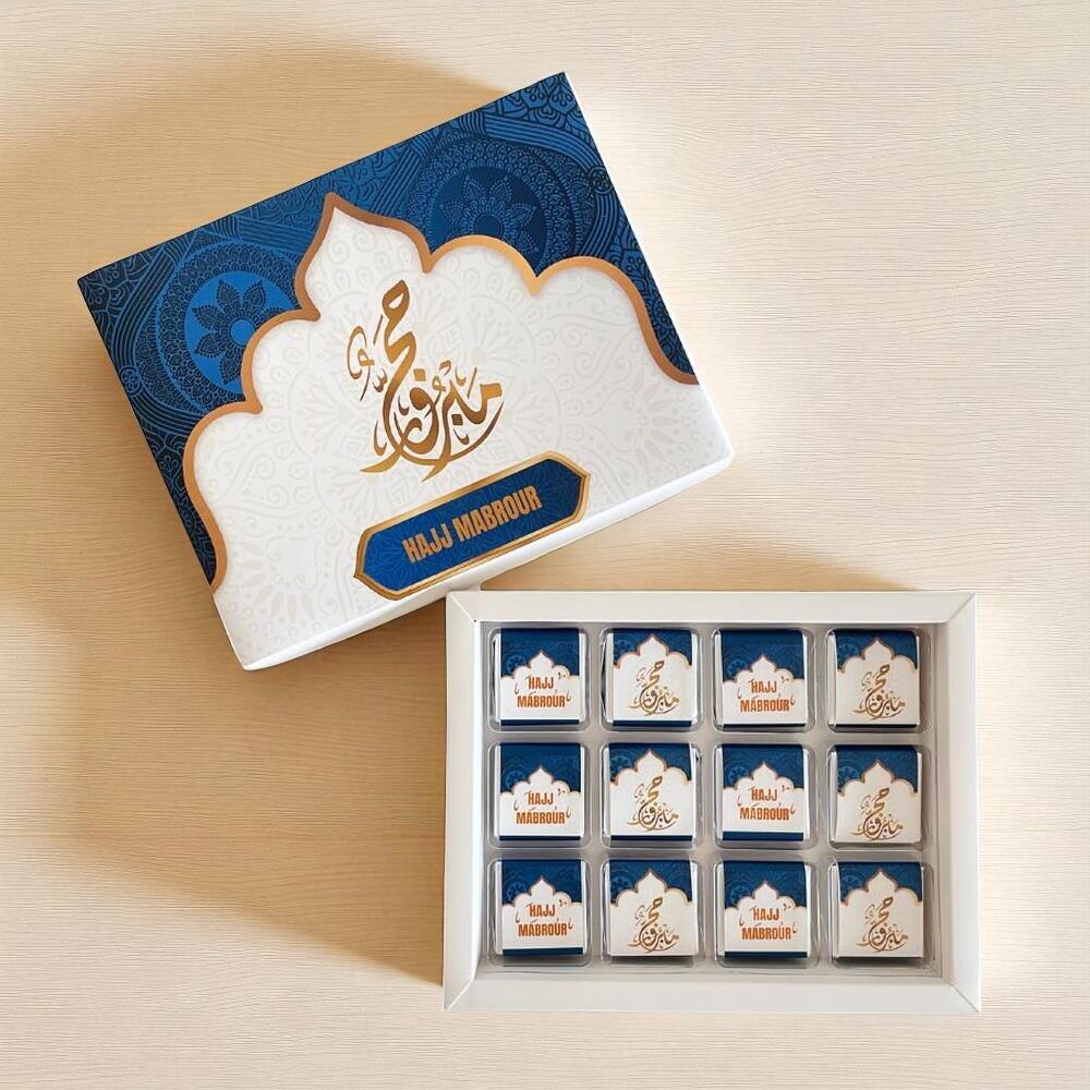 Hajj Mubarak Premium Chocolate Box – 12 Belgian Chocolates Gift for Pilgrims