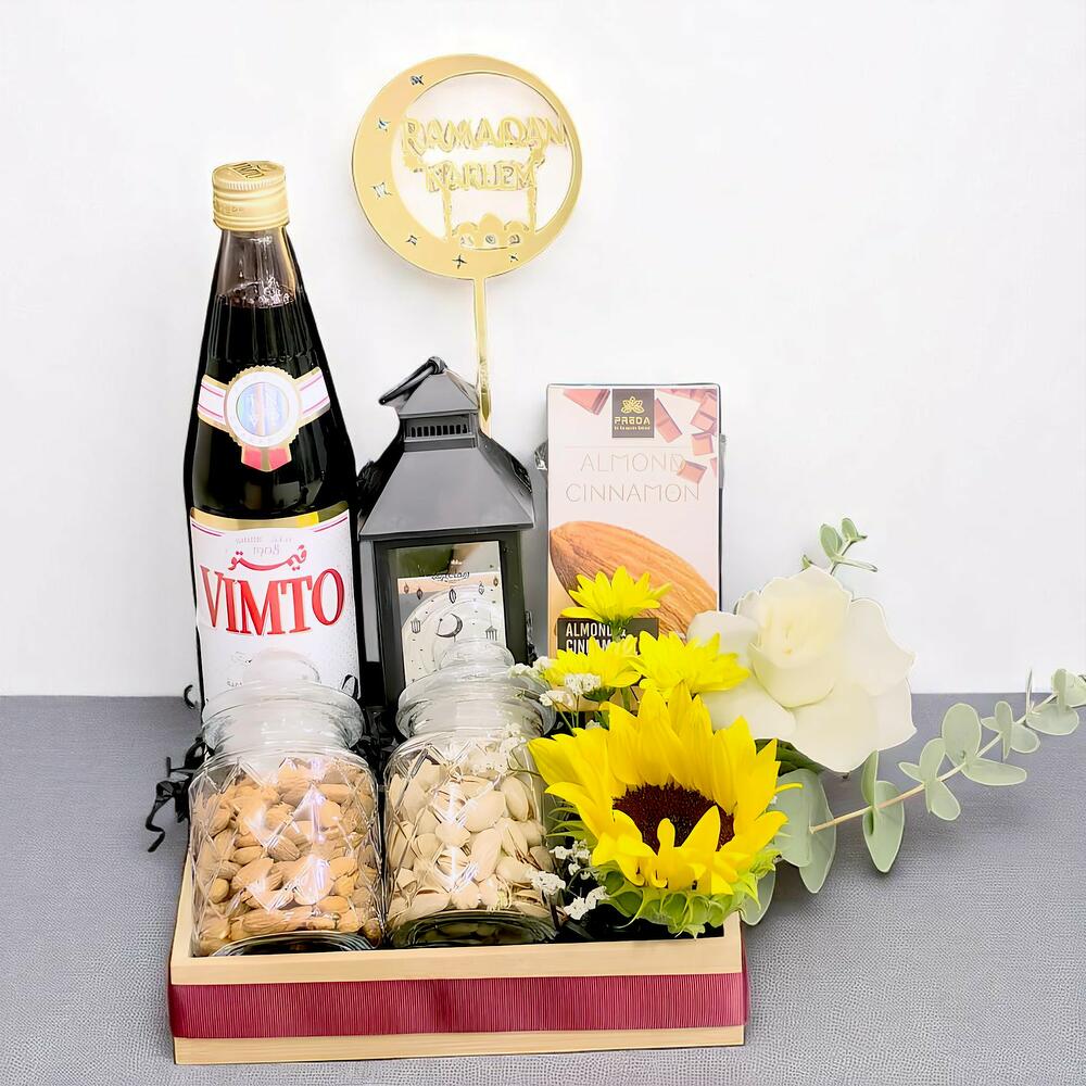 Experience the luxurious combination of crunchy almonds and mouth-watering roasted pistachios (200g each), complemented by a decadent Preda chocolate bar. To top it all, enjoy the rich and distinctive flavor of a Vinto Cordial (750 ml). This top-notch selection of gourmet nuts and treats is perfect for indulging your senses or gifting your loved ones.