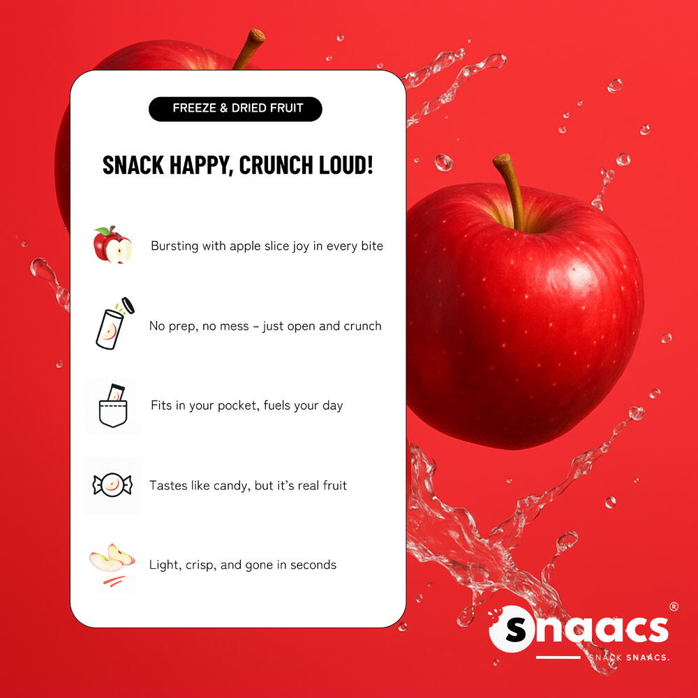 Crispy Sweet – Enjoy the light crunch of real apple slices coated with just the right touch of sugar. Freeze-Dried Freshness – Locking in natural apple flavor while keeping a perfect airy texture. Anytime Snacking – A portable, mess-free snack for work, school, travel, or picnics. No Artificial Colors – Made without unnecessary additives for a more wholesome treat. UAE’s Choice for Fruit Snacks – A favorite pick for those who love crunchy, sweet, and fruity bites.