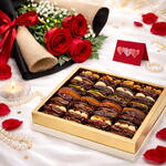 Valentine Set Stuffed Mejdool 6 type mix 24 pcs and 3 Red Flower